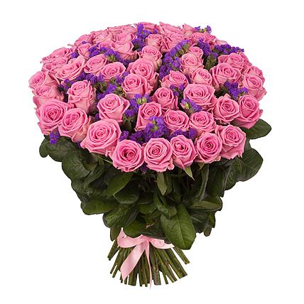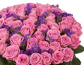 - Purple Limonium: the delicate purple limonium adds a touch of elegance and depth, complementing the pink roses with its rich, vibrant hue. Known for its long-lasting beauty, it brings both charm and texture to the bouquet.