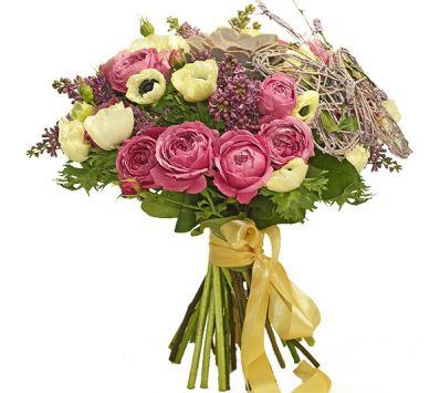 This enchanting arrangement blends the delicate beauty of lilac, roses, and anemones with the unique charm of succulents, creating a whimsical and elegant display. The addition of the butterfly pick adds a touch of whimsy and nature-inspired flair, making it a perfect choice for those seeking a bouquet that's both graceful and enchanting.