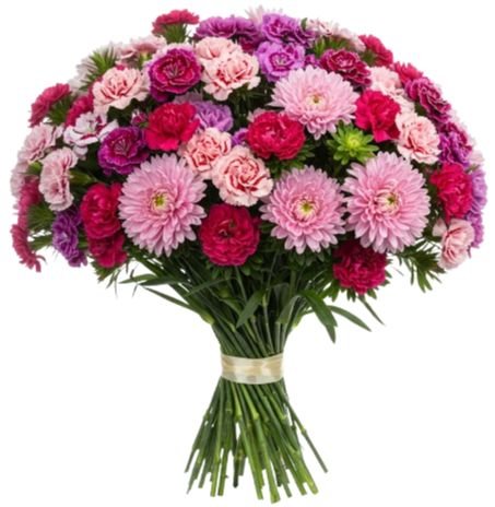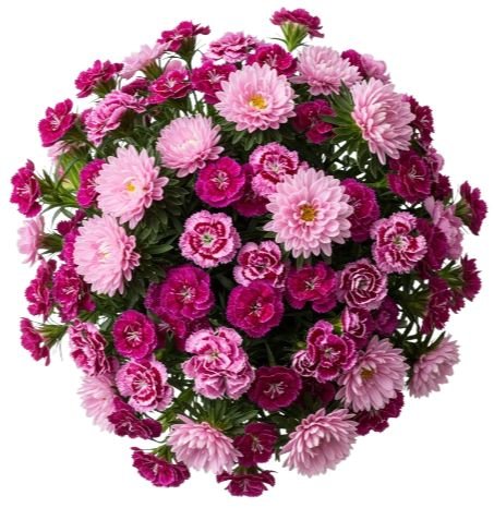 The Pink Chinese Asters and Sweet Williams Bouquet is a charming and vibrant floral arrangement that radiates warmth, happiness, and timeless elegance. This bouquet pairs the delicate beauty of pink chinese asters with the playful variety of multicolored Sweet Williams, creating a lively mix of textures and tones that feels both graceful and joyful.