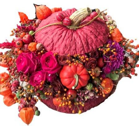 Introducing the Pink Dream Pumpkin floral arrangement, a delightful and whimsical centerpiece that captures the essence of autumn with a playful twist. This unique bouquet combines a harmonious blend of colors and textures, making it an ideal choice for seasonal celebrations, fall gatherings, or as a charming addition to your home decor. A unique Pink Dream Pumpkin that will delight everyone, even those who do not like autumn! This wonderful arrangement will add charm to your table at home, in front of the house or wherever you want to put it. A pumpkin will also be a perfect gift for someone you want to surprise and make him forget this gift for a long time!
