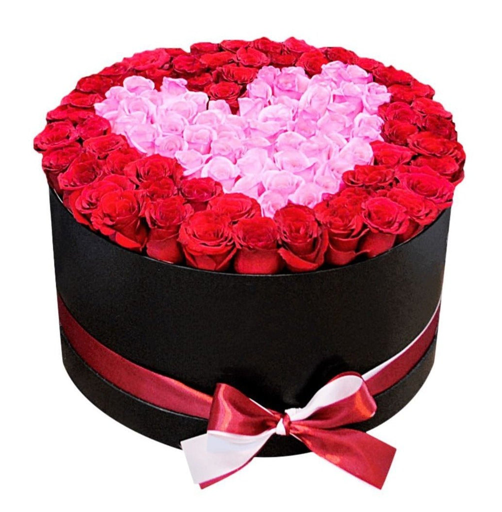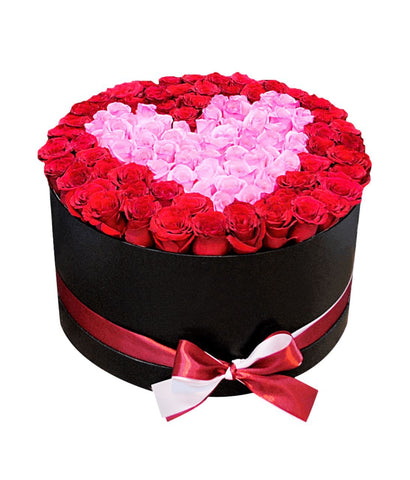 Express your deepest emotions with our Pink Heart on Red Box, an enchanting arrangement that combines the classic beauty of roses with a romantic, modern twist. The vibrant red box is adorned with a stunning heart shape made from delicate pink and red roses, making it the perfect gift for someone special.
