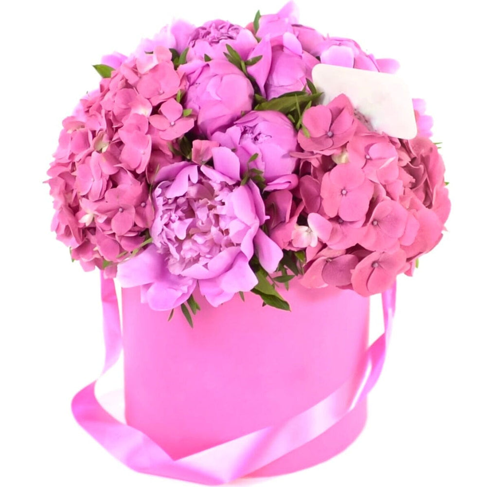 Add a touch of elegance and romance to any occasion with our Pink Island Flower Box. This luxurious arrangement features the rich, lush blooms of dark pink peonies paired with the soft, delicate petals of pink hydrangea blooms, creating a stunning combination that radiates beauty and charm.