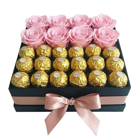 Pink Roses and Chocolate Box – Elegant Gift Set with Luxury Chocolates