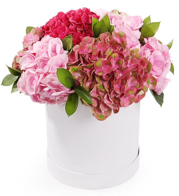 Delight in the romantic beauty of our Pink Shades Hydrangea Box, an elegant floral arrangement that captures the softest and most luxurious blooms tones of pink. Featuring a lush combination of light pink hydrangea, pink hydrangea, and vintage red hydrangea, this box is the perfect gift to express love, appreciation, and admiration.
