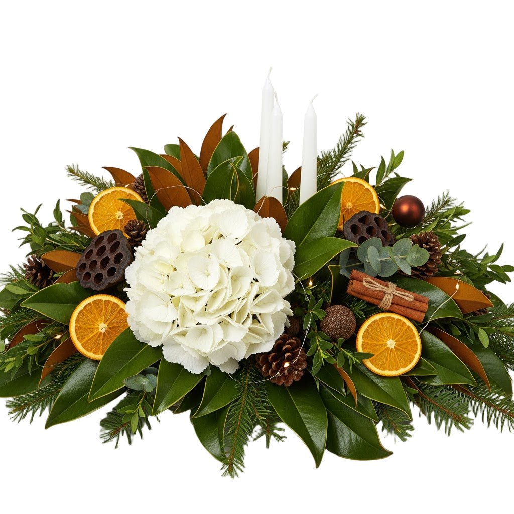 The Prestige Magnolia Leaf and Hydrangea Bloom Centerpieces combine the rich, velvety beauty of magnolia leaves with the full, elegant blossoms of hydrangeas to create a sophisticated focal point for any event or home décor. Designed to bring natural luxury to dining tables, holiday gatherings, weddings, or corporate events, these centerpieces showcase timeless style and organic charm. The contrast of deep green magnolia foliage and soft hydrangea petals delivers both texture and visual depth, making each piece a standout element in upscale décor. Perfect for adding warmth, refinement, and a touch of grandeur to any setting. Order now for next-day delivery across the UK and elevate your festive décor with the Prestige Magnolia Leaf and Hydrangea Bloom Centerpieces — a masterpiece of winter elegance, natural beauty, and holiday warmth.