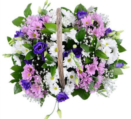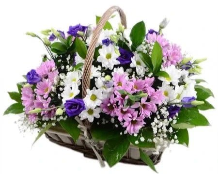 Discover the beauty of a thoughtfully curated Pretty Basket of Daisy Chrysanthemum and Lisianthus, featuring a charming blend of white and pink daisy chrysanthemum, purple lisianthus, white gypsophila flowers, and lush greenery. This stunning arrangement is the perfect gift for any occasion, offering both elegance and natural freshness in a single, beautifully crafted display.