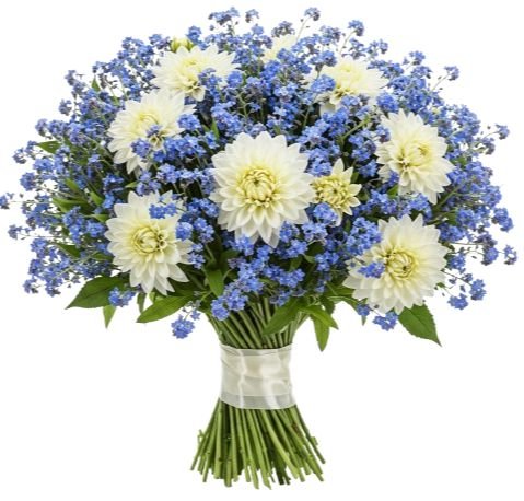Delight your loved ones with our Pretty Bouquet of Forget Me Not and Dahlia, a graceful and heartfelt floral composition that blends the delicate beauty of blue forget-me-nots with the bold elegance of dahlias blooms. This bouquet is designed to be both striking and symbolic, perfect for gifting on special occasions or simply to express affection. This bouquet combines the richness of dahlias with the sentimental sweetness of forget-me-nots, creating a balanced, elegant arrangement that conveys love, admiration, and thoughtfulness. A perfect gift for birthdays, anniversaries, or as a touching reminder to someone special that they are never forgotten.