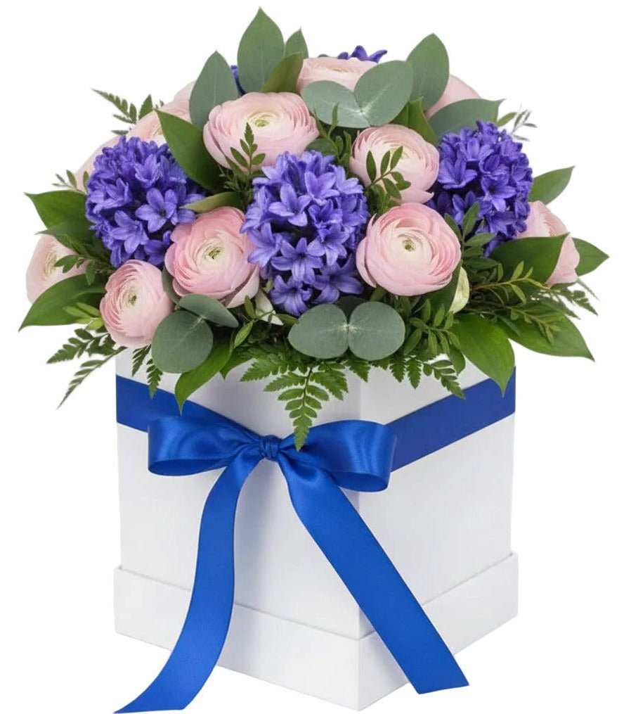 Pretty Box of Ranunculus and Hyacinth with Greenery – A Charming Spring Floral Gift