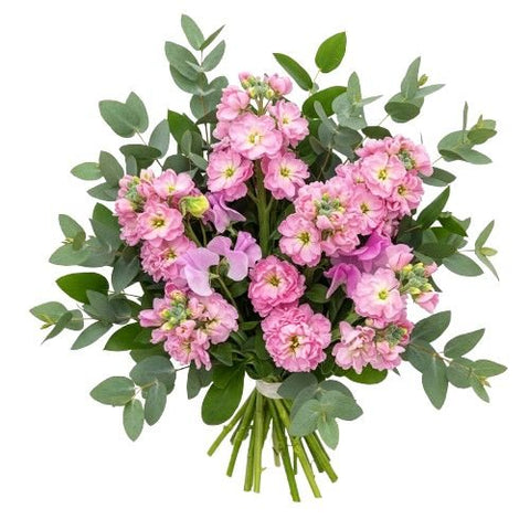 Celebrate life’s gentle moments with the Pretty Sweet Pea and Stocks Bouquet — a graceful combination of fragrant pink stock, charming sweet pea in your chosen color, and fresh greenery. This elegant bouquet is perfect for expressing love, gratitude, or simply bringing joy to someone's day. Whether you're gifting for a birthday, anniversary, Mother’s Day, or sending well-wishes, the Pretty Sweet Pea and Stocks Bouquet makes a thoughtful and stylish choice. Its soft colors and natural fragrance create a lasting impression.