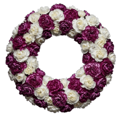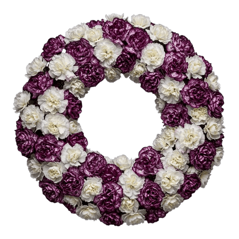 Purple and White Carnations Wreath – A Graceful Tribute of Elegance and Respect
