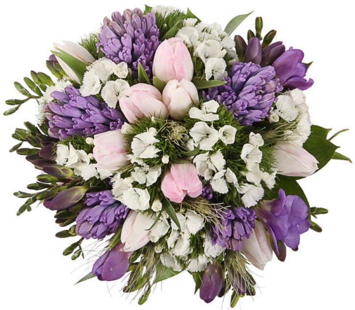 - Purple Hyacinths: famed for their sweet, lingering fragrance and vibrant color, they bring richness and depth to the bouquet.