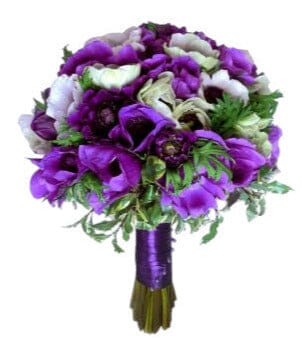 The Purple and White Anemones Bridal Bouquet is a beautiful and sophisticated floral arrangement designed to complement any wedding theme. Featuring delicate purple and white anemones blooms, this bouquet exudes elegance and grace, making it the perfect choice for brides who want a unique and memorable floral statement.