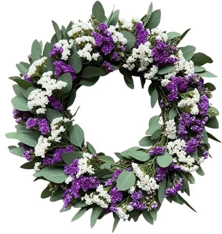 Ideal as a decorative accent for doors, walls, or centerpieces, the Purple and White Limonium with Eucalyptus Wreath is suitable for a wide range of occasions – from festive gatherings and weddings to moments of remembrance or gratitude. Each wreath is crafted with care using fresh, long-lasting botanicals to ensure beauty and vibrancy for days to come. Whether displayed indoors or outdoors, this exquisite wreath brings a touch of nature’s grace and enduring elegance to your home, making it a meaningful gift or a stylish addition to your own décor.