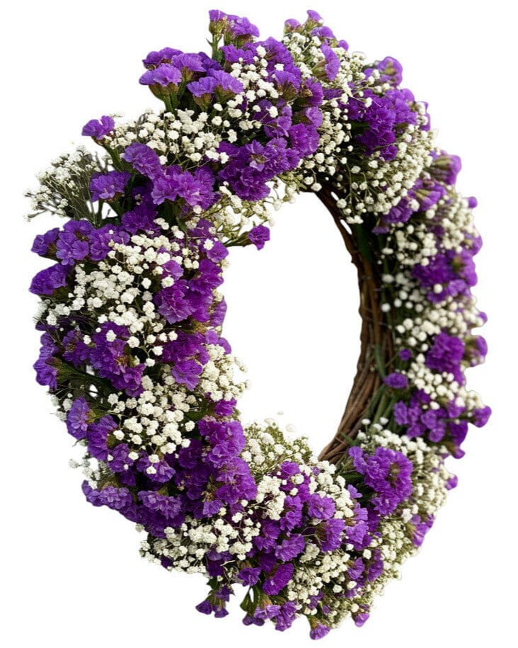 Purple Limonium and Gypsophila Wreath - Elegant Floral Door Decor