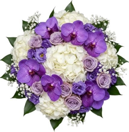 Immerse yourself in elegance and tranquility with our Purple Serenity Bloom Cluster Bouquet, a luxurious arrangement that blends shades of purple with soft accents for a refined and graceful finish. Designed to impress, this bouquet highlights exotic blooms and timeless classics, creating a striking yet serene display. Perfect for weddings, anniversaries, or as an unforgettable gift, the Purple Serenity Bloom Cluster Bouquet is hand-crafted by expert florists to embody elegance, beauty, and serenity. A bouquet that captures both the vibrancy of exotic flowers and the timeless romance of classic blooms, it is designed to leave a lasting impression.
