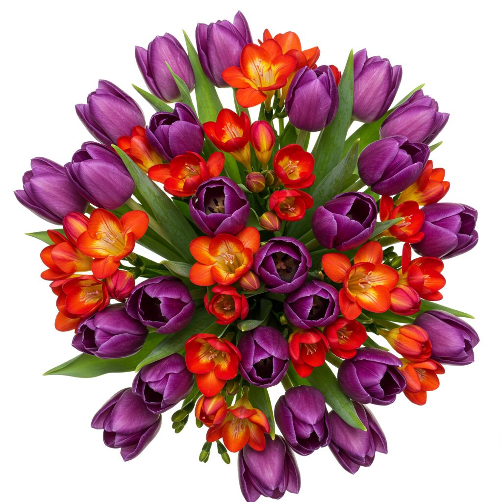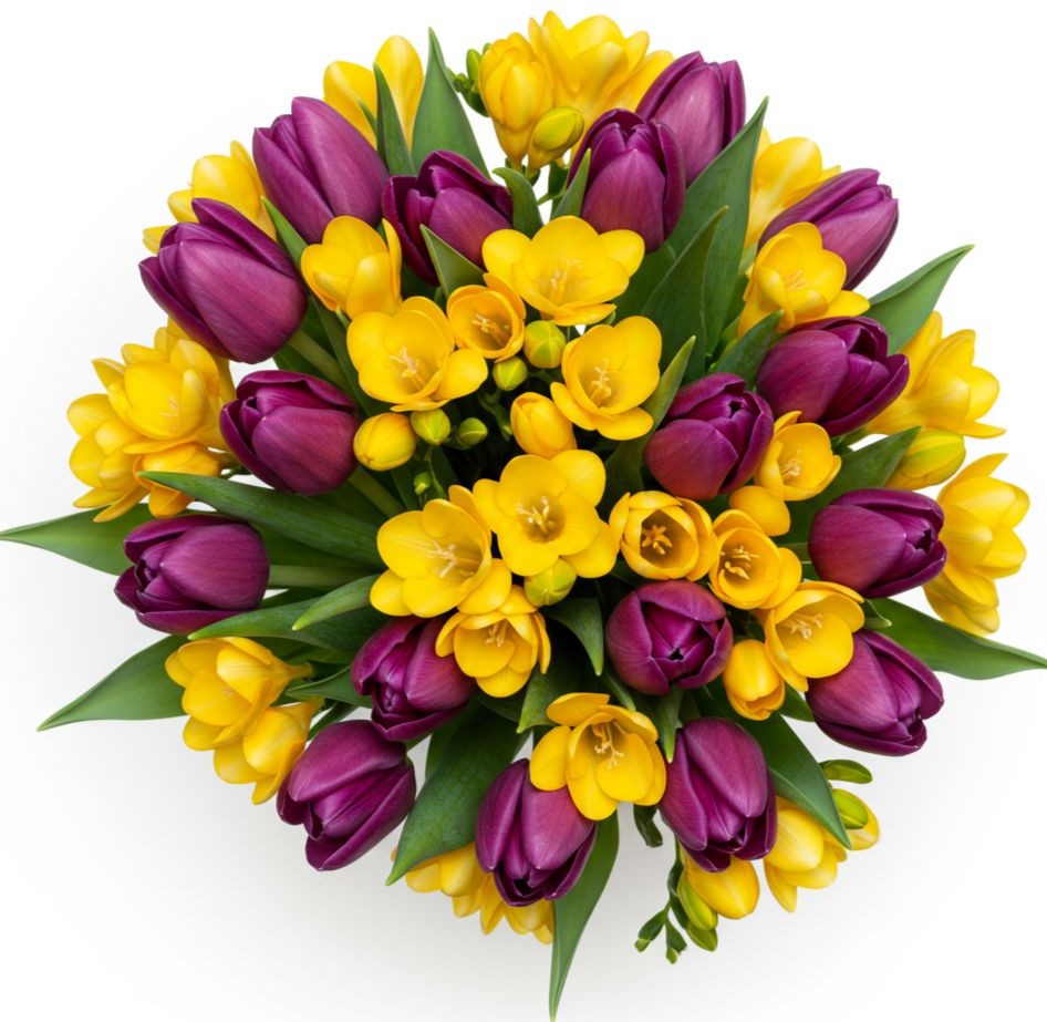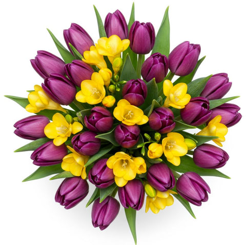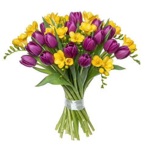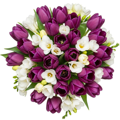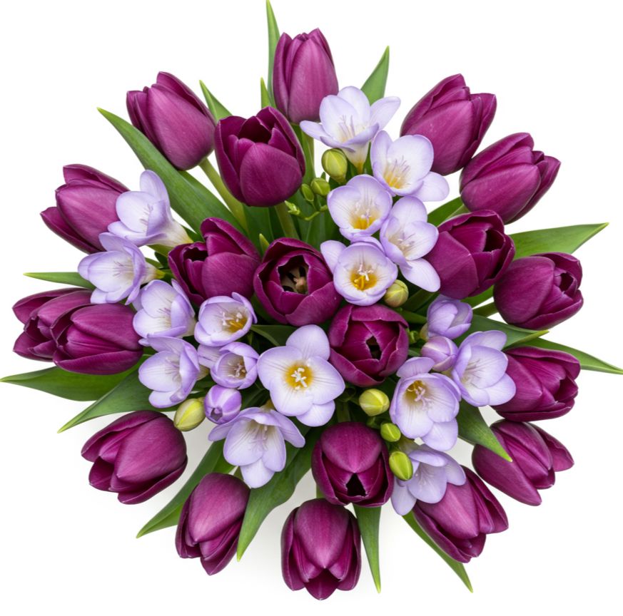 Purple Tulips and Freesias Bouquet - A Gorgeous Combination of Color and Scent
