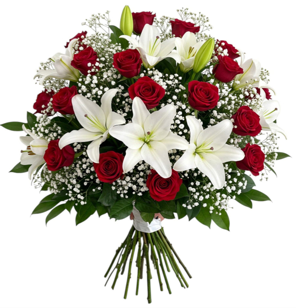 Elevate your gifting with the timeless elegance of our Refined Bouquet of Red Roses and Lily with Gypsophila. This exquisite floral arrangement blends passion, beauty, and grace — perfect for romantic occasions, heartfelt gestures, or moments that call for unforgettable floral artistry. The Refined Bouquet of Red Roses and Lily with Gypsophila is a perfect gift for anniversaries, romantic celebrations, or any occasion where elegance and emotion are key.