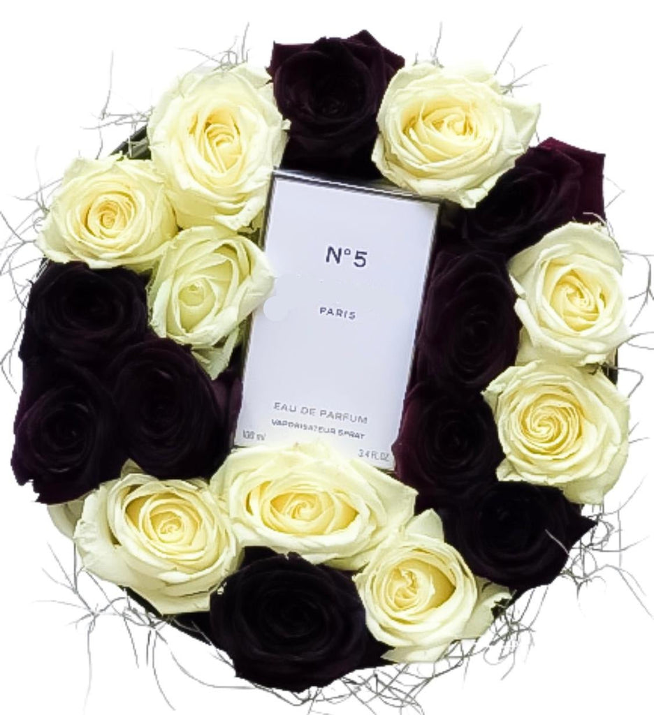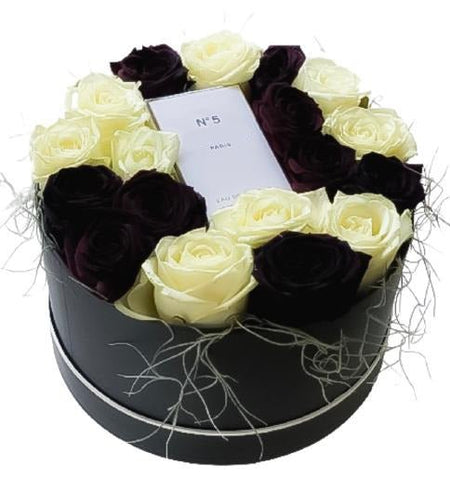 Refined Box of Black and White with Perfume – A Sophisticated Floral Gift