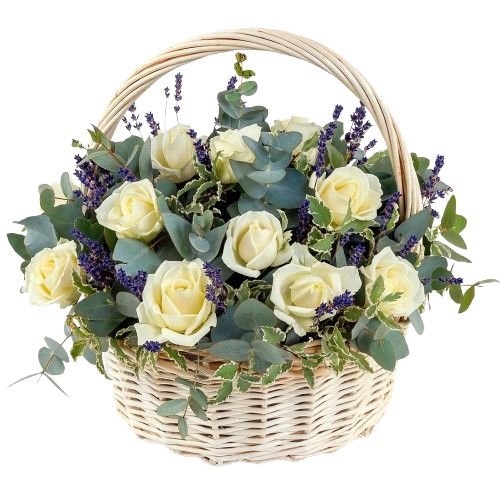 Refined Roses with Lavender Basket - A Perfect Floral Gift