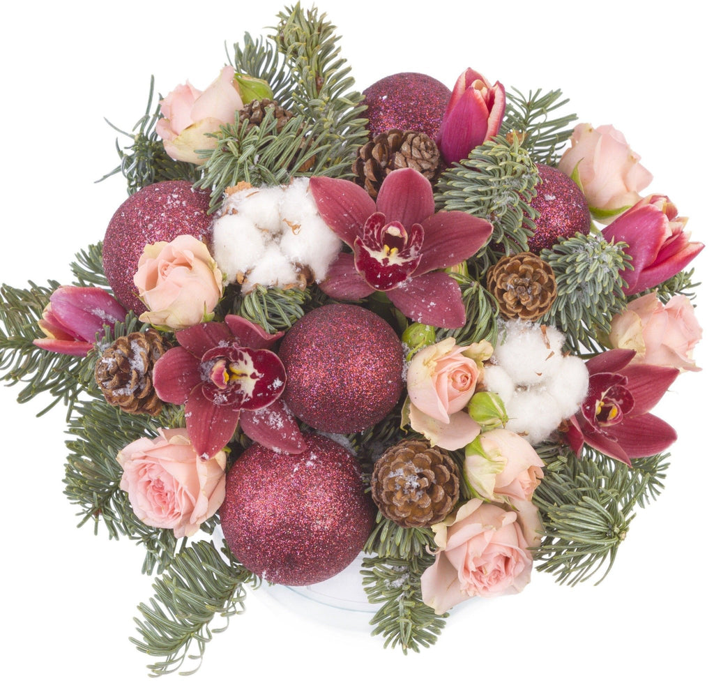 Christmas bouquets that contain fresh flowers, spruce and Christmas balls are a perfect combination. It contains everything that will highlight the Christmas atmosphere in your home.
