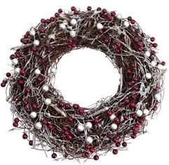 Red and White Berry Festive Wreath – Artificial Red and White Berries on Twigs Ring