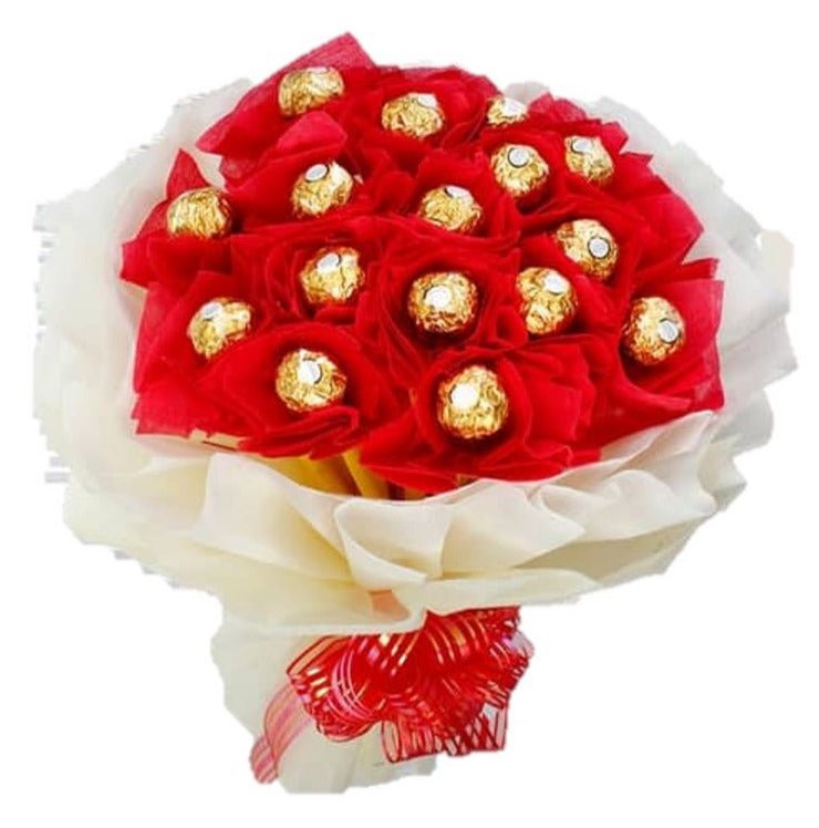 The Red and White Chocolate Bouquet is ideal for a range of occasions, such as Valentine's Day, anniversaries, birthdays, or even celebrations of love and friendship. It’s a sweet and personal gift that combines the beauty of floral arrangements with the indulgence of chocolates.