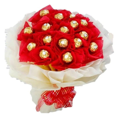 This bouquet offers a creative twist on traditional chocolate gifts, turning them into an elegant and delightful treat that will satisfy both the eyes and the taste buds. The red and white theme, along with the high-quality chocolates, ensures this gift is a luxurious and memorable one.