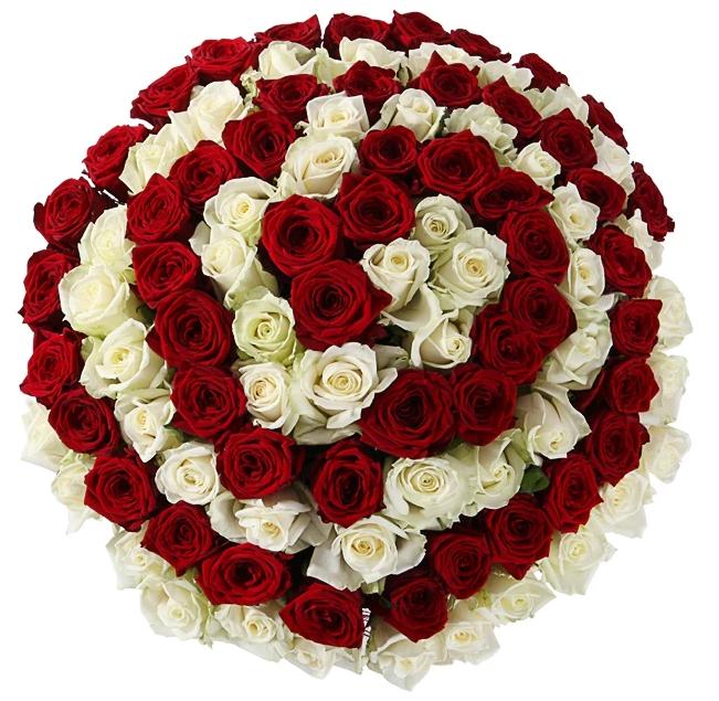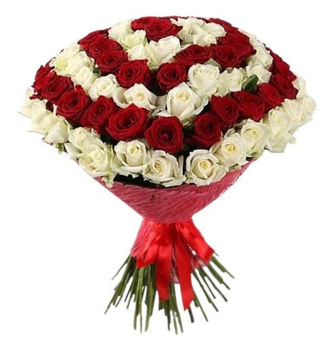 Experience the timeless beauty of the Red and White Spiral Bouquet, featuring exquisite red and white roses masterfully arranged in a captivating spiral. This bouquet is a testament to elegance, created by our expert florists to express love and romance in the most enchanting way.