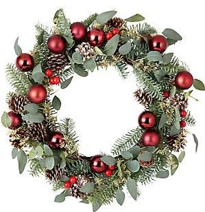 - Red Assorted Baubles: adorned with vibrant red assorted baubles, this ring brings a touch of traditional Christmas cheer. The rich, bold color of the baubles adds a festive pop, reflecting the light and enhancing the holiday ambiance.