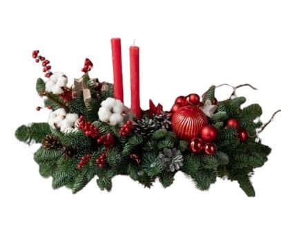 - Fresh Spruce: provides a vibrant backdrop for the other elements, filling the arrangement with the refreshing scent of the season and symbolizing resilience.