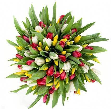 The Red, White, and Yellow Tulips, along with the greenery, create a breathtaking bouquet that captures the essence of springtime with its vibrant colors and fresh fragrance. Whether it's for a birthday, thank you gift, or to simply brighten someone's day, this bouquet is sure to bring joy and delight to its recipient.