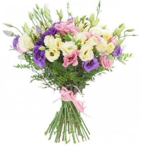 The Romantic Pink Embrace bouquet is a stunning celebration of love and affection, artfully composed of a variety of delightful pink, white and light purple lisianthus blooms. Each flower contributes its unique charm to create a harmonious and romantic arrangement. These blooms create the Romantic Lisianthus Embrace Bouquet bouquet — a perfect expression of love, ideal for anniversaries, romantic gestures, or simply to brighten someone's day.