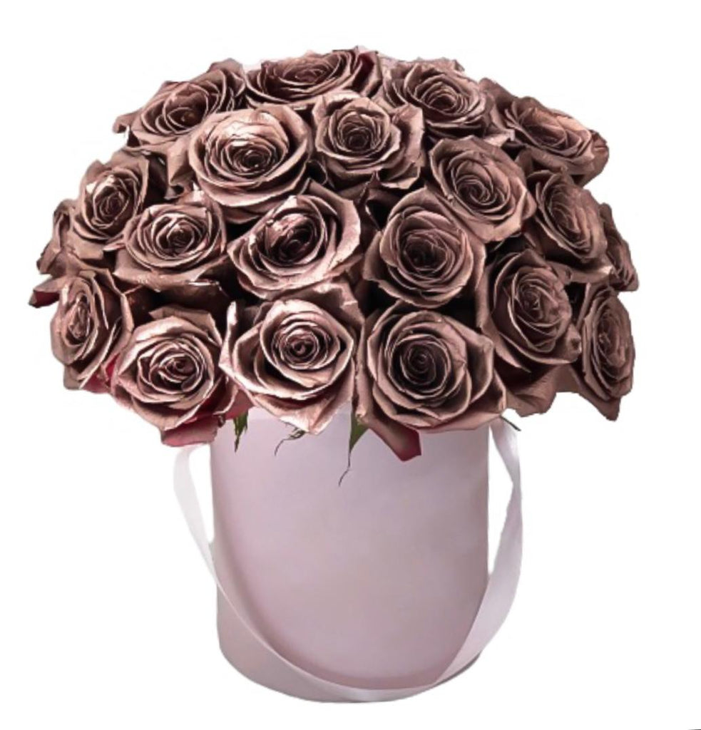 This is an arrangement of Rose Gold Roses that exudes sophistication and is perfect way to remind someone you care. The ideal centerpiece to add a burst of color to any room and the perfect reminder of someone special. Simply select your favorite shade of roses and we’ll do the rest.More original then normal bouquet, more passionate then any words.