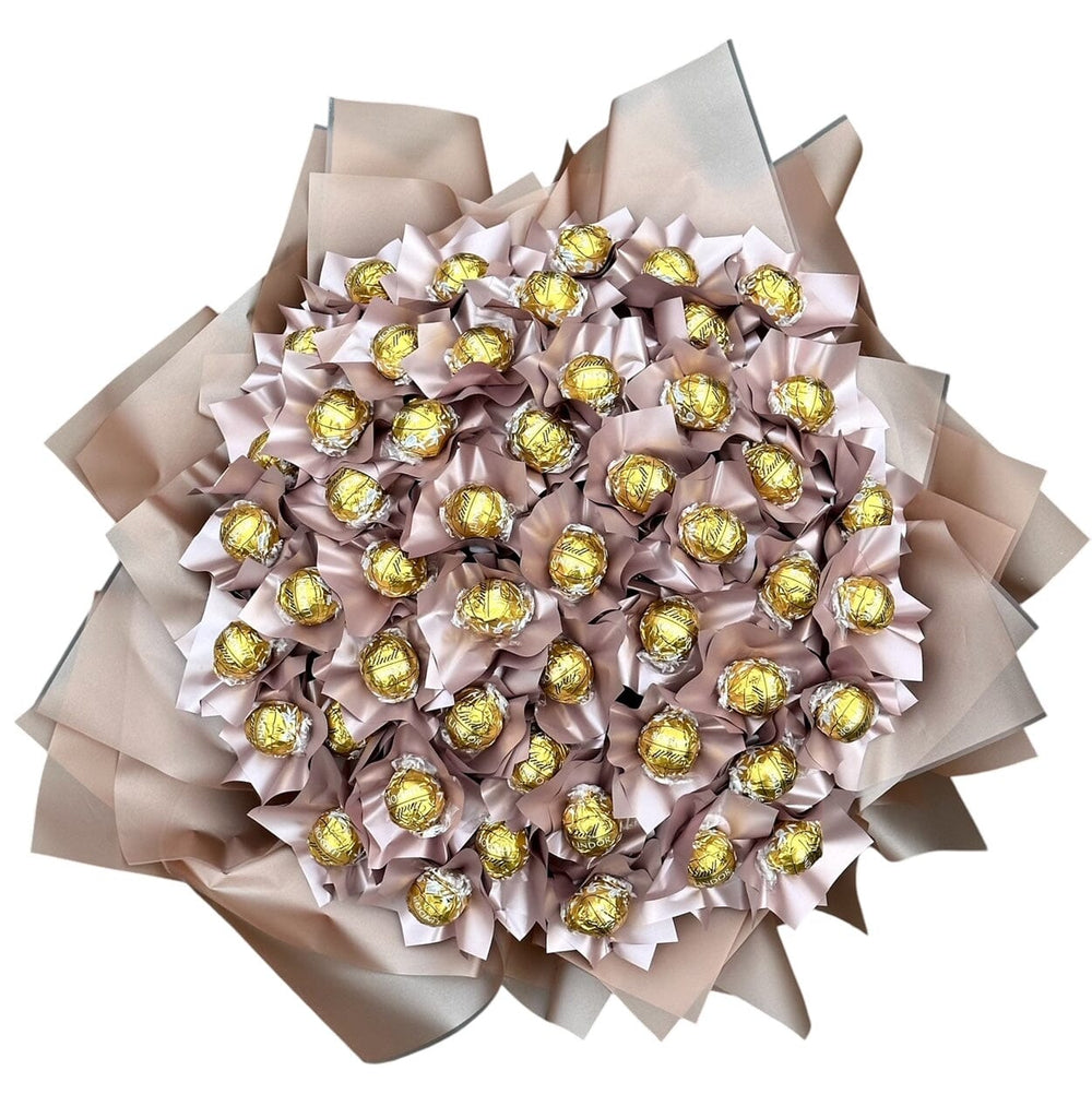 The Rose Gold Wrapped Lindt Lindor Truffles Chocolate Bouquet is a luxurious and delightful gift that combines the finest Lindt Lindor chocolates with elegant rose gold wrapping. Perfect for celebrating a special occasion or simply treating someone to a moment of indulgence, this bouquet brings together the beauty of floral arrangements with the sweetness of premium chocolates.