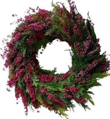 Rosy Woodland Autumn Wreath - Pink Kapps Erica with Conifer Accents
