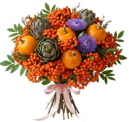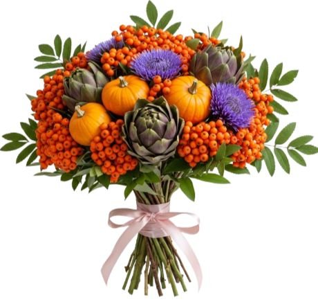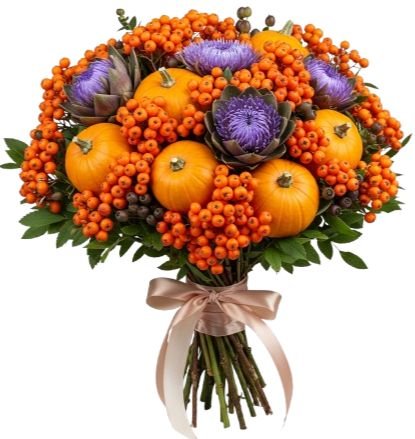 - Fresh Greenery: adds balance, texture, and depth, highlighting the rich autumnal hues of the bouquet.