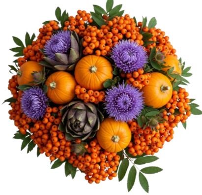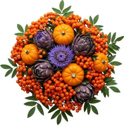 - Orange Rowan Berries: symbolising protection and good fortune, these vibrant berries add a striking seasonal touch and rich autumn colour.