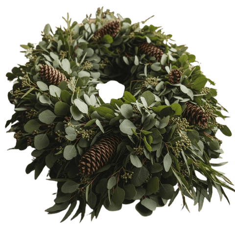 - Eucalyptus Nicolii: known for its long, slender leaves and refreshing fragrance, eucalyptus nicolii adds graceful movement and a calming winter scent to the wreath.