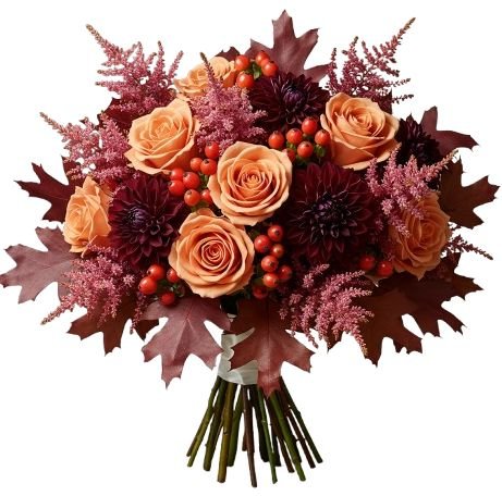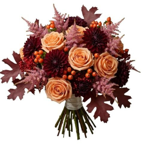 Its blend of vibrant autumn flowers in deep reds, oranges, and golden yellows, paired with the natural texture of berries, creates a striking display that captures the cozy, festive spirit of the season. This bouquet is more than just a decoration — it's a way to bring the essence of fall indoors, creating a welcoming atmosphere that will be treasured throughout the season. The Rustic Elegance Bouquet is the ideal gift for a loved one or a beautiful way to celebrate autumn in your own home.