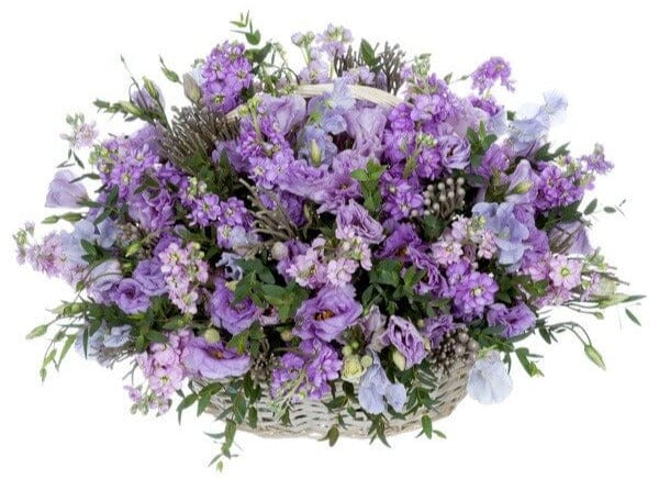 Immerse yourself in the delightful fragrance and beauty of our Scented Basket of Stock with Lisianthus and Sweet Pea. This charming floral arrangement combines the sweet scents of fresh stock with the delicate elegance of lavender lisianthus and the soft, fragrant blooms of lavender sweet pea.