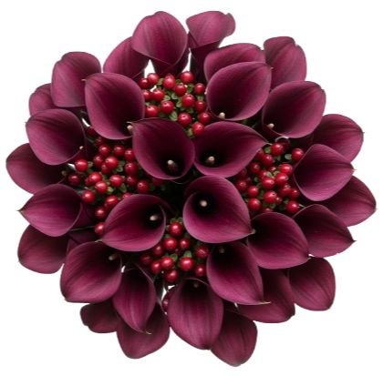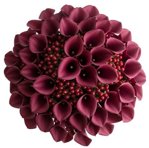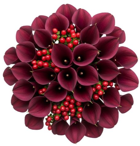Each stem is hand-selected and arranged by expert florists to create a flawless balance of shape, color, and contrast. The smooth curves of the Calla Lily bring a sense of purity and modern elegance, while the rich tones of the hypericum provide a warm, passionate highlight that makes the entire arrangement stand out. Perfect for romantic gestures, anniversaries, Valentine's Day or elegant celebrations, this bouquet speaks volumes without a word. Its unique combination of flowers makes it equally suited for expressing heartfelt emotions or adding a touch of sophistication to any space.