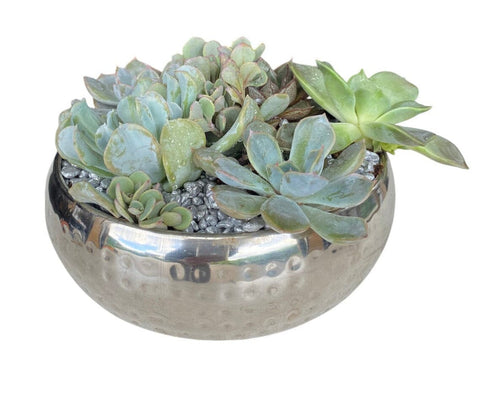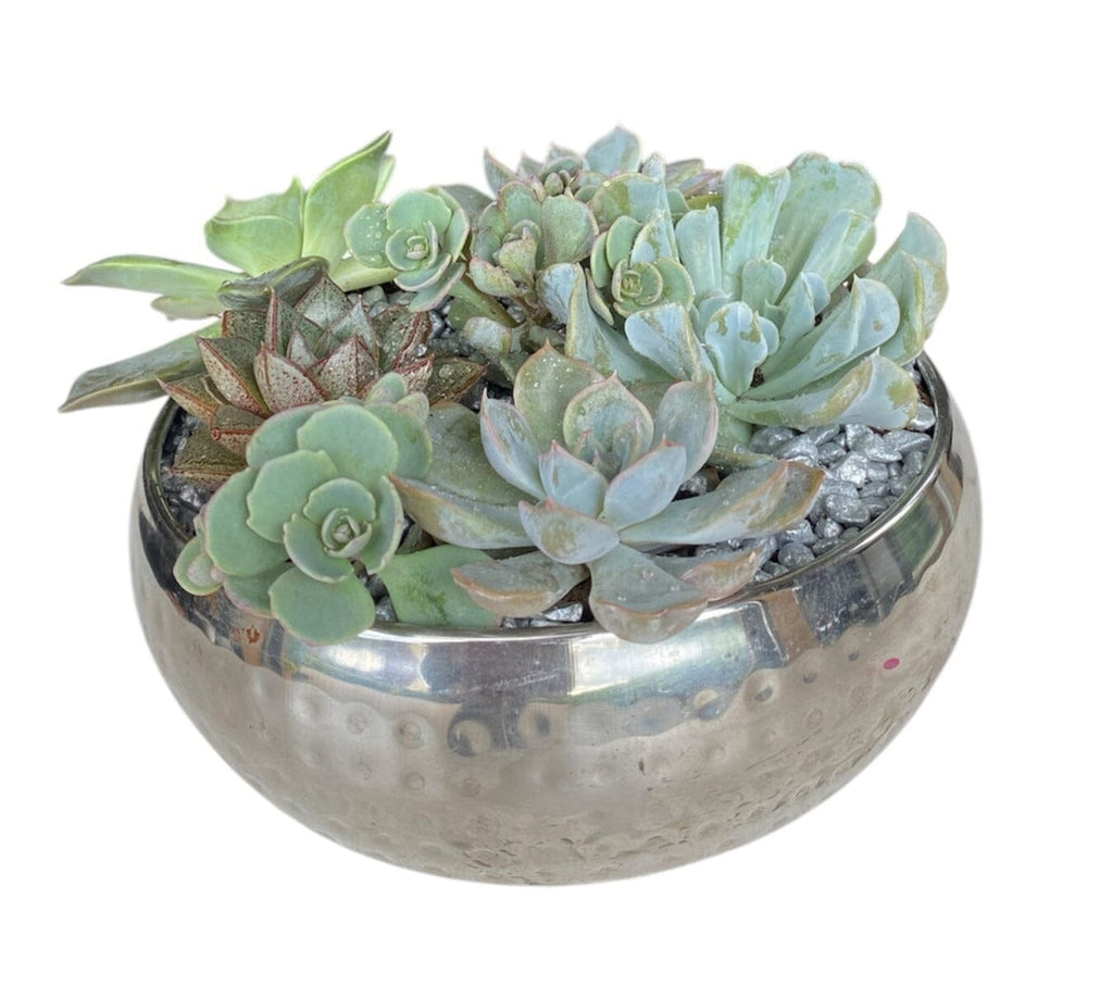 Bring a touch of modern greenery into your space with our Silver Metal Pot of Succulent. This compact and elegant arrangement features an assorted succulent plant nestled in a sleek silver metal pot, creating a stylish and low-maintenance addition to any home or office.