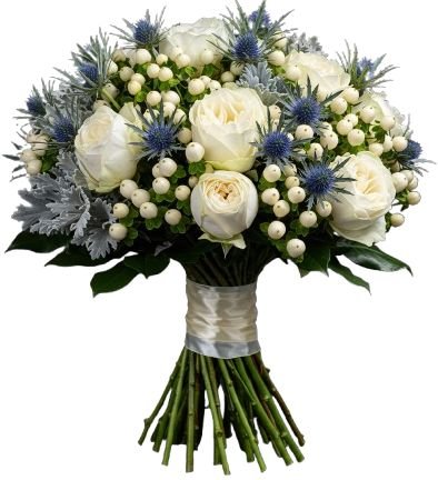 A bouquet that blends purity with elegance, this design is ideal for weddings, anniversaries, or as a luxury gift to express love, gratitude, or celebration. The white roses symbolize grace and devotion, while the silver foliage adds a modern, romantic touch. Carefully arranged by our florists, this luxury bouquet is perfect for creating a serene, stylish atmosphere in your home or gifting someone special a piece of floral artistry.