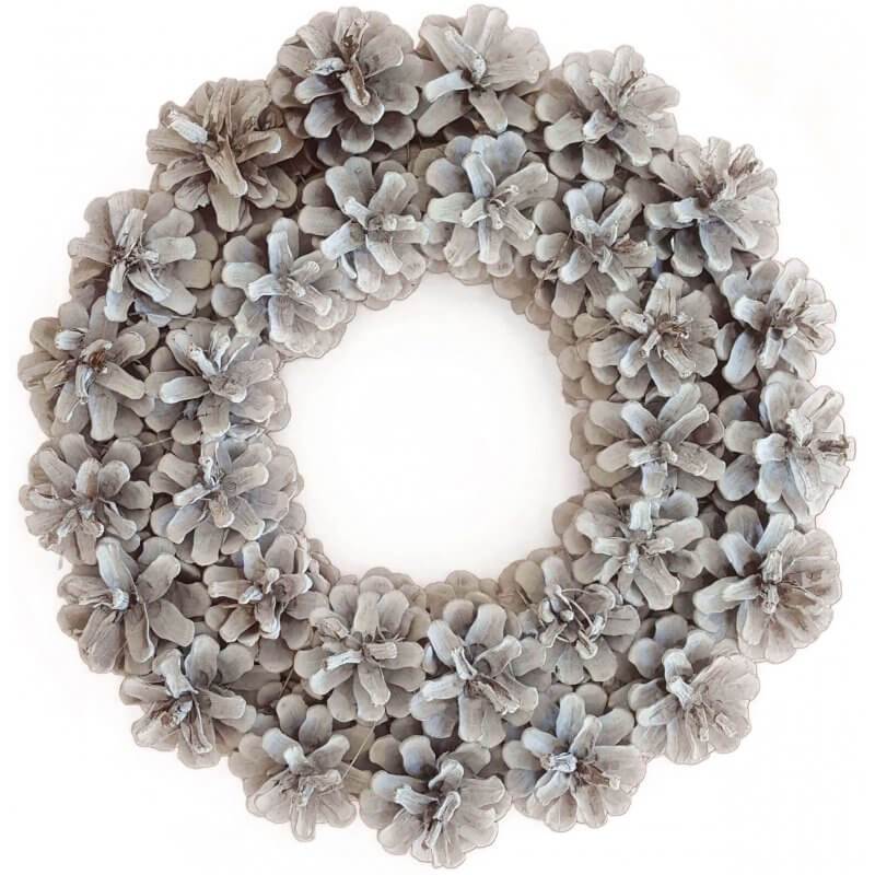 - White Cones: create a soft, frosty effect, evoking the beauty of a snowy winter landscape. Their delicate texture and color blend seamlessly with the other elements, adding depth and elegance to the wreath's design.