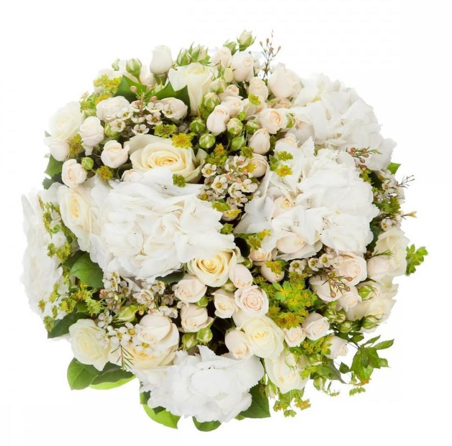 Indulge in the Snowing Gorgeous Bouquet with its exquisite blend of white hydrangea, ivory roses, and delicate wax flowers. Ideal for weddings and special events, this stunning arrangement is available for delivery throughout the UK.
