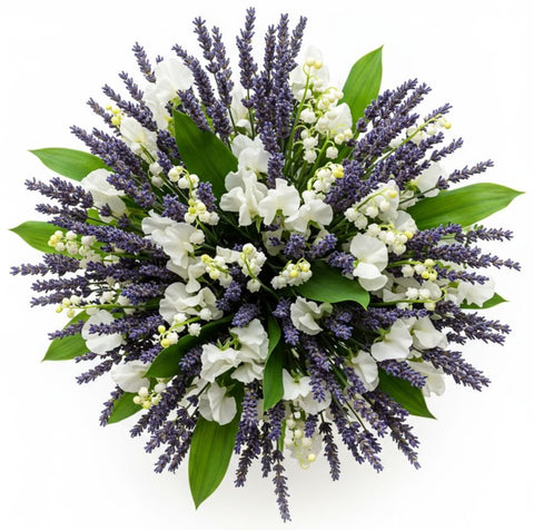 Lily of the Valley: symbolizing purity and happiness, these tiny bell-shaped blooms add an air of elegance and a delicate floral perfume. Their dainty appearance enhances the bouquet's softness and refinement.