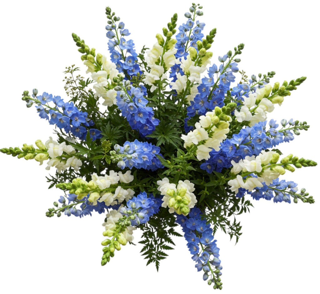 Splendid Bouquet of Blue Delphinium and Snapdragons – A Tall, Graceful Display of Color and Elegance