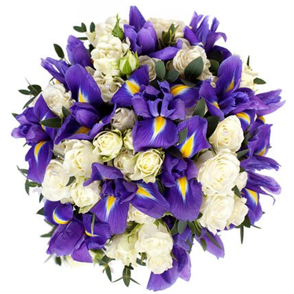 Elegant Bridal Bliss: Spray Roses and Iris Bouquet - Flowers Box London