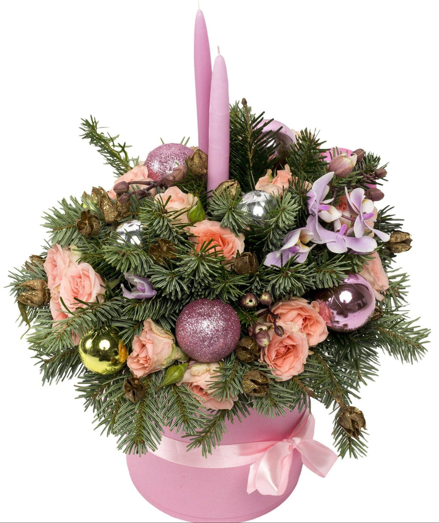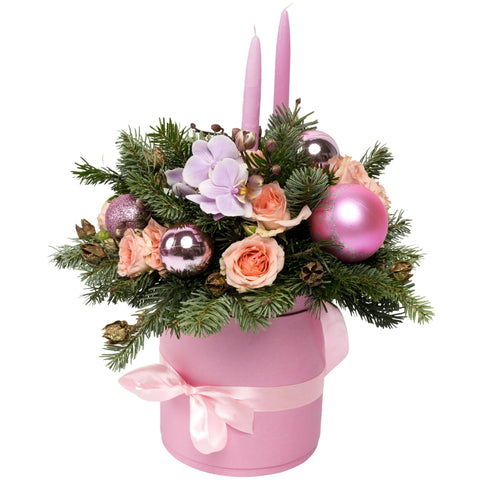Celebrate the festive season with our Spray Roses Christmas Box, a luxurious Christmas flower arrangement combining fresh spruce, delicate spray roses, candles, and sparkling baubles. Each handcrafted composition from Flowers Box London radiates warmth and elegance, making it the perfect Christmas gift or home decoration. Surprise your loved ones with a unique floral box that captures the true spirit and beauty of Christmas. Bring the magic of Christmas home with our Spray Roses Christmas Box — festive flower arrangements with spruce, baubles & candles for a cozy holiday glow.
