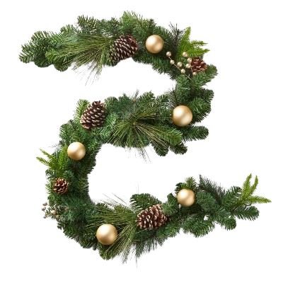 Spruce and Pine Fresh Garland with Baubles - Elegant Holiday Decoration